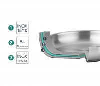 -Cuerpo fabricado en 3 capas de máxima calidad (Inoxidable 18/10 - Aluminio 1060 - Inoxidable 18%).