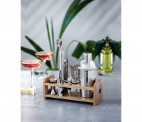 -Todas las piezas fabricadas en acero inoxidable de gran calidad, tapón de aleación de zinc y soporte de bambú 100% natural.-Indispensable tanto para profesionales como para aficionados.-Mantiene todas las herramientas organizadas y elegantemente mostradas. Diseño portátil.-Ideal para preparar fácilmente todo tipo de cócteles.-Piezas fáciles de limpiar.
