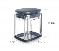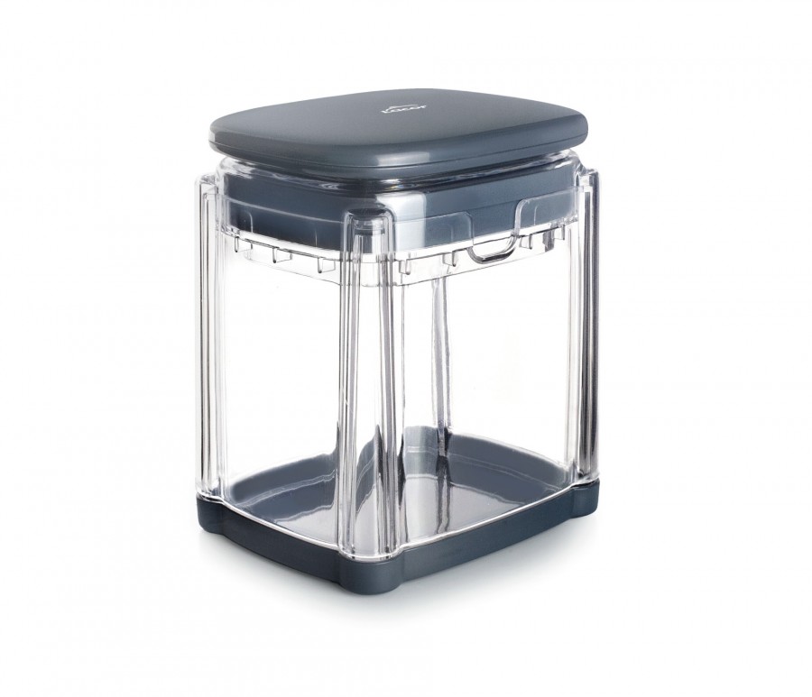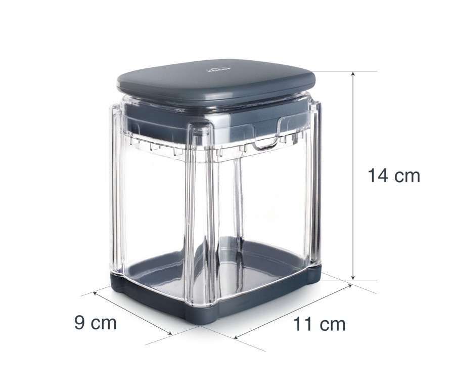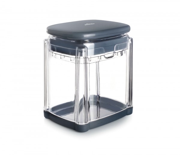 -Recipiente transparente que recoge directamente los alimentos cortados para mayor limpieza y orden.