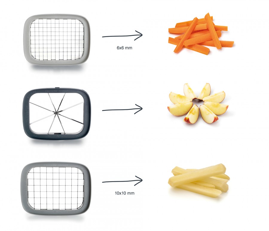 -Ideal para obtener tiras, dados y octavos de frutas y verduras de forma rápida, uniforme y segura.