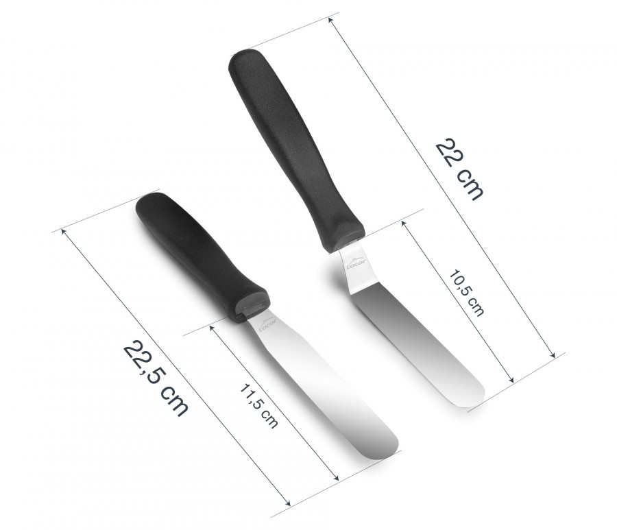 -Fabricadas en acero inoxidable de alta calidad.-Ligeras, resistentes y flexibles.-Ideales para emplatar, extender de manera uniforme cremas y glaseados, así como para levantar, extraer y manipular alimentos de pequeño tamaño.-Su mango ergonómico ofrece un agarre preciso y cómodo, facilitando su uso con total seguridad y eficiencia.