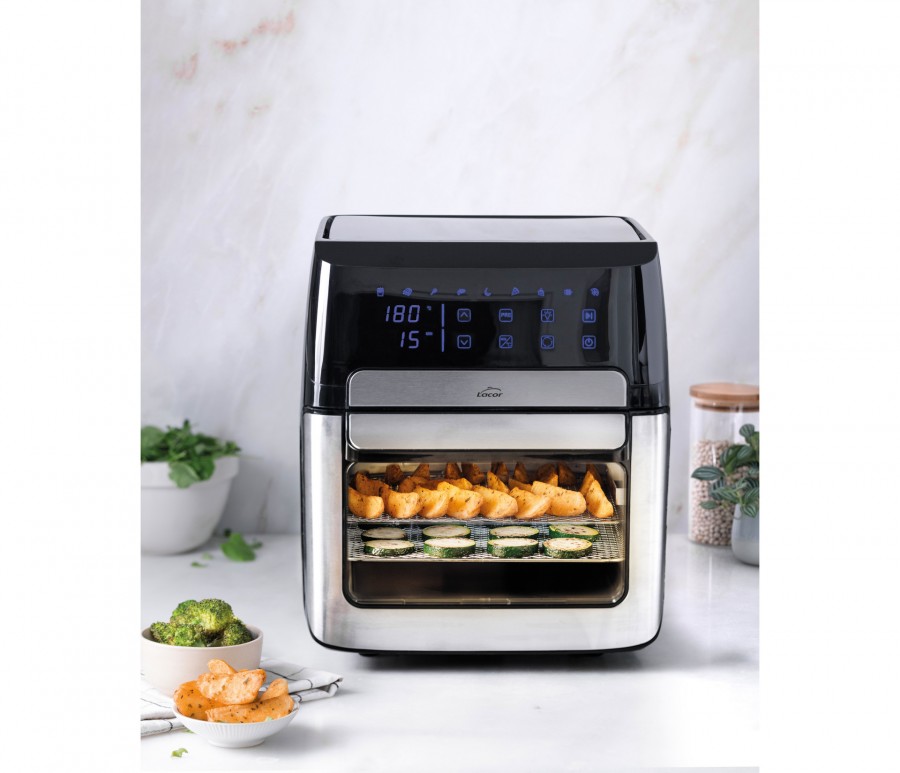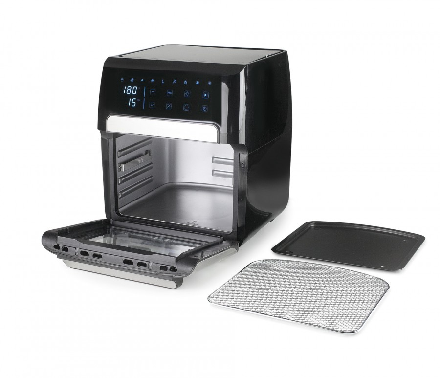 -Pantalla Led táctil: Intuitiva y muy fácil de usar. Control de tiempo (hasta 60 minutos y 6 horas para deshidratar) y ajuste de temperatura de cocción de forma precisa (de 40ºC a 200ºC).