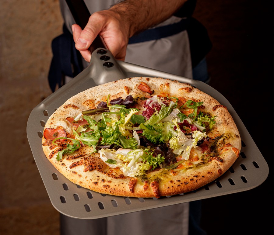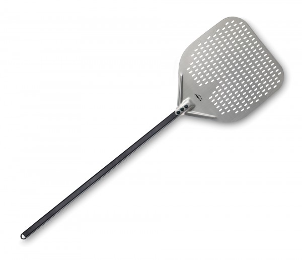 -Base perforada: permite que el calor y la humedad escapen, evitando que la pizza se quede pegada a la pala y garantizando un deslizamiento suave y rápido. Esto ayuda a mantener la pizza crujiente y perfectamente cocida, sin perder su textura.