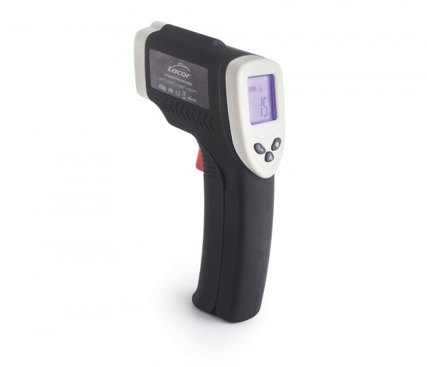 -Termómetro con láser infrarrojo, ideal para medir temperaturas sin contacto de forma precisa y segura.
